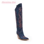 Autumn Winter New Western Cowboy Boots Women’s Thick High Heel Pointed Knight Boots Embroidered Fashion Platform Skinny Shoes