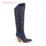 Patchwork Denim Women’s Boots Slip-On Pointed Toe Over-the-Knee Fashion Turned-over Edge Cool Modern Boots