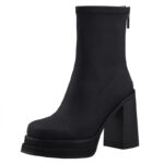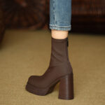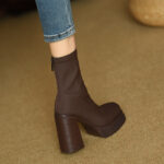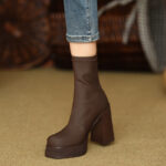 Elastic Slim Boots Thick Heel Short Boots Women’s New High Heel Shoes Autumn Winter Thick Sole Square Head Women’s Boots