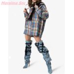 Patchwork Denim Women’s Boots Slip-On Pointed Toe Over-the-Knee Fashion Turned-over Edge Cool Modern Boots