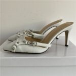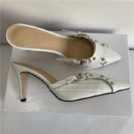 Sexy Rivet Decor Buckle Belt Point Toe Sandals Women Thin High Heel Genuine Leather Slingbacks Party Shoes Summer