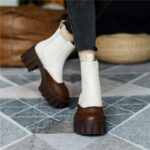 Women Thick Heels Ankle Boots Fashion Mixed Colors Genuine Leather Platforms Shoes Autumn Winter Working Casual