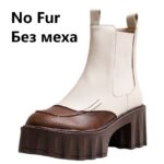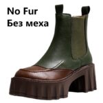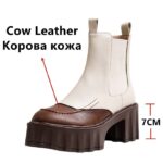 Women Thick Heels Ankle Boots Fashion Mixed Colors Genuine Leather Platforms Shoes Autumn Winter Working Casual