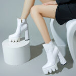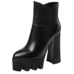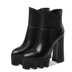 Women’s Short Boots High Heels Leather Thick Heel Platform Platform Boots Autumn and Winter New Boots